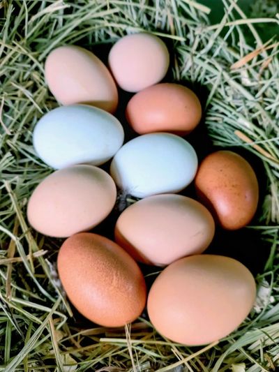 Eggshell color comes down to the breed of the hen, not the quality of the egg. Hens with white earlobes typically lay white eggs, while hens with red earlobes tend to lay brown eggs, and some breeds produce blue or green shells. Just like hair or eye color in people, it’s written into a hen’s genetics—nature’s way of adding a little variety to the egg basket, with no difference in taste or nutrition.